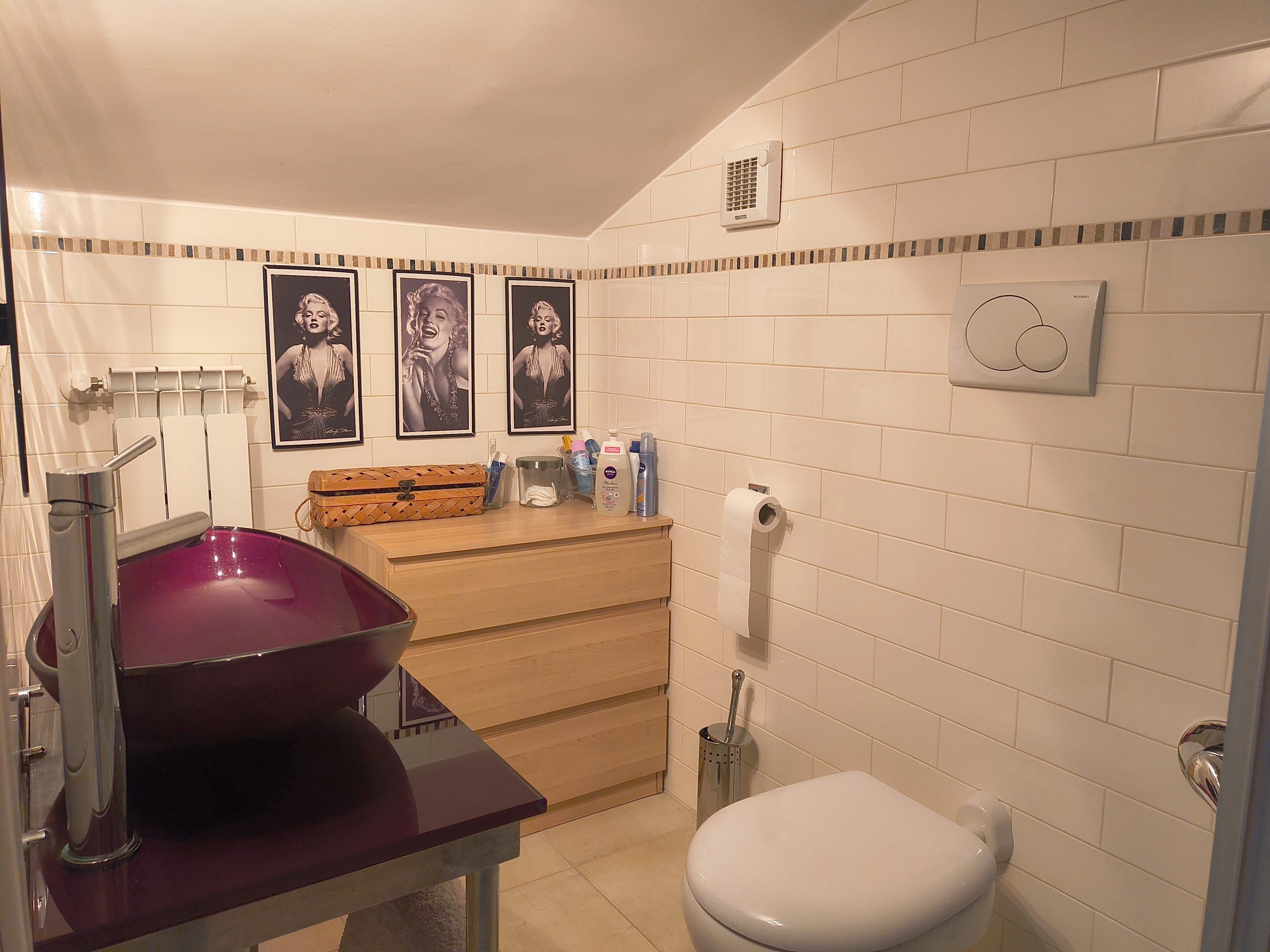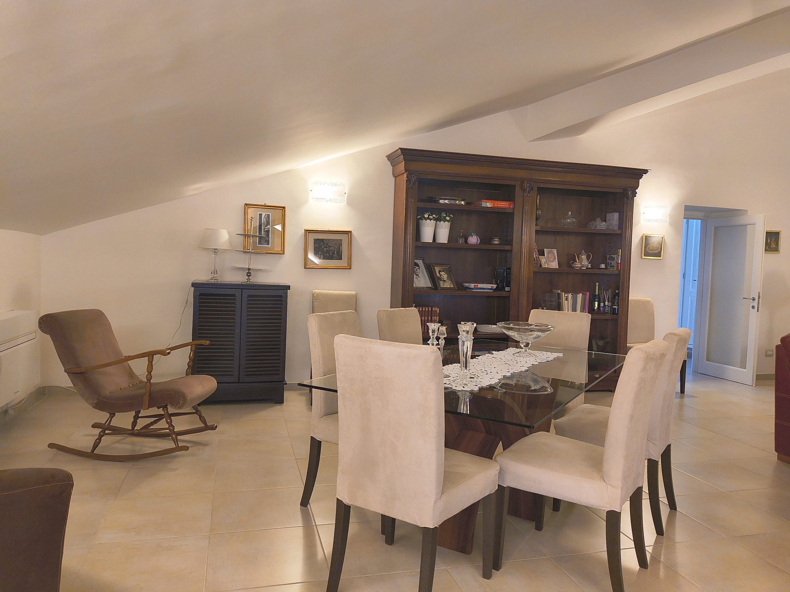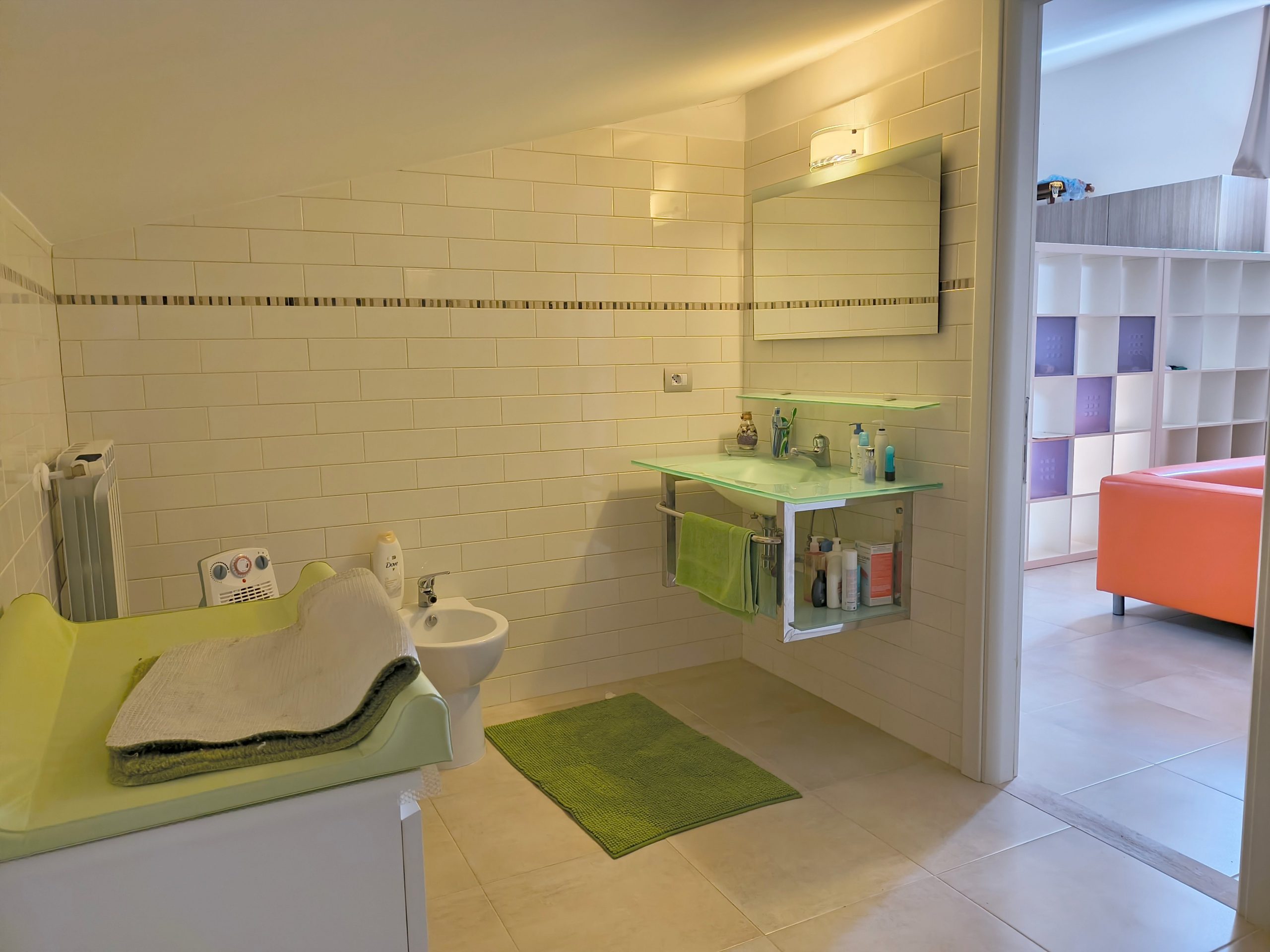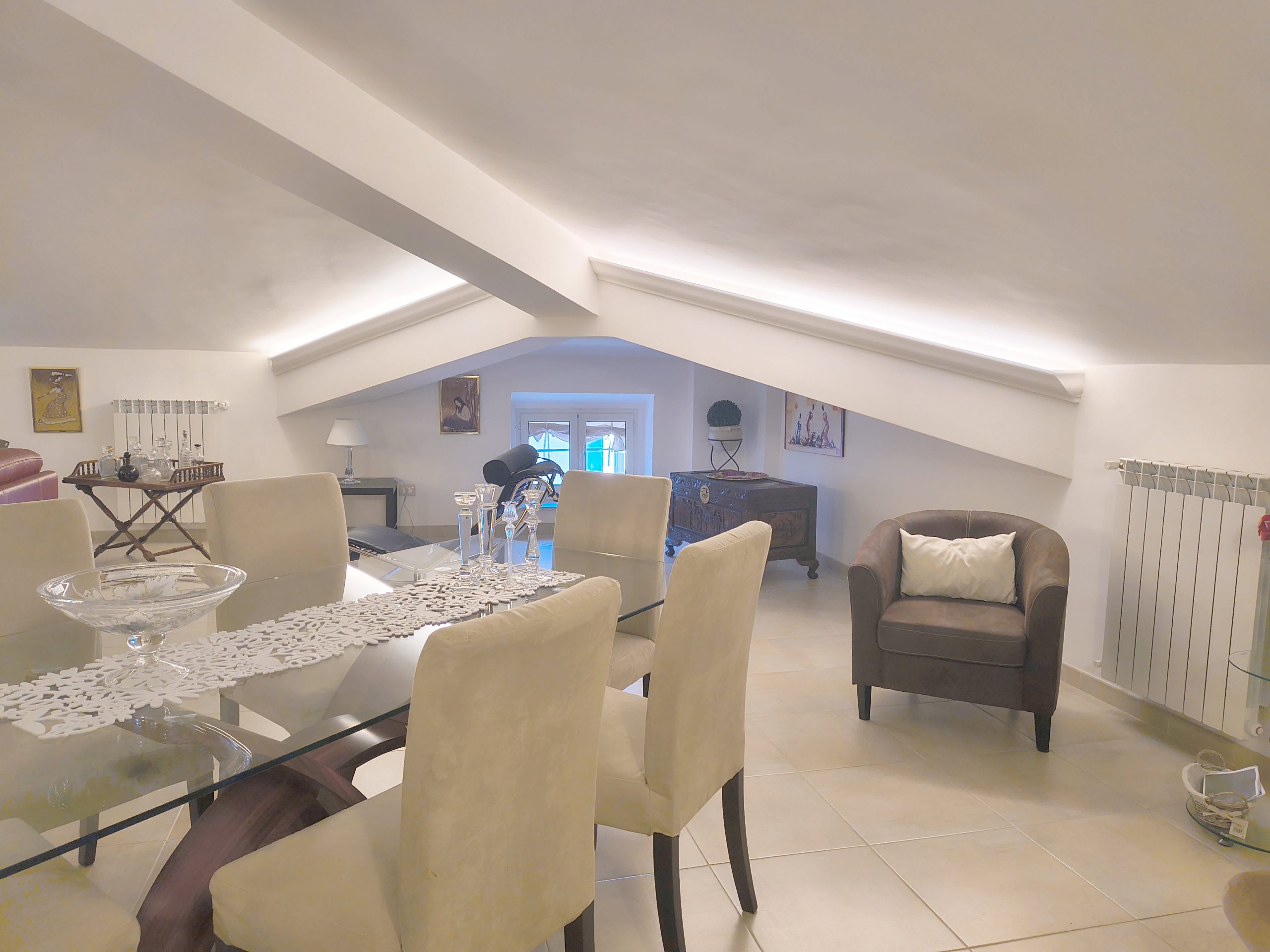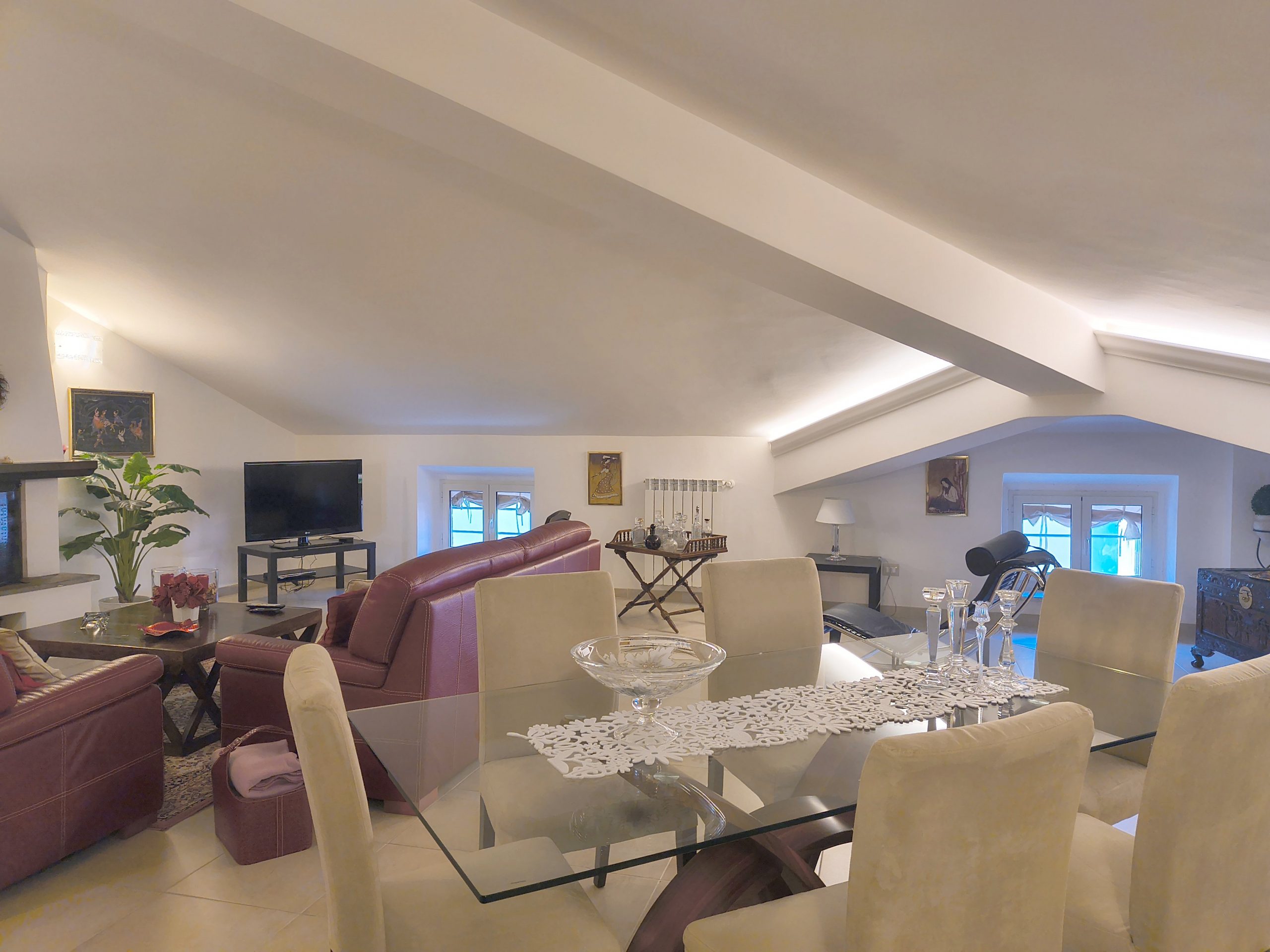 La superficie si divide al secondo piano in ampio ingresso-zona relax con divano, cucina abitabile, soggiorno di rappresentanza dotato di camino, ideale per momenti di convivialità, due camere matrimoniali, una delle quali con cabina armadio e bagno privato che garantiscono il massimo comfort, bagno padronale, completo di vasca e finestra. Al terzo piano, luminoso open space con accesso da scala in legno e acciaio attualmente adibito a camera matrimoniale con soggiorno, con molteplici possibilità di personalizzazione e bagno con doccia. Già predisposto per la realizzazione di un angolo cottura.